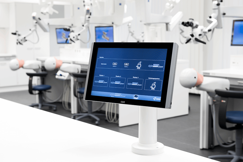 Für praxisnahe Schulungen sowie Kundenveranstaltungen und Präsentation stehen die neuesten Dental-Technologien zur Verfügung. Das EBS Multimediasystem alphadidact® Digital ermöglicht hier eine flexible und qualitativ hochwertige Visualisierung von Arbeitsschritten oder Live-Behandlungen.